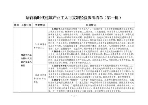 培育新时代建筑产业工人可复制经验做法清单